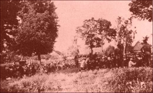Żydzi zebrani na boisku szkolnym. Widok od strony wsi.[18]